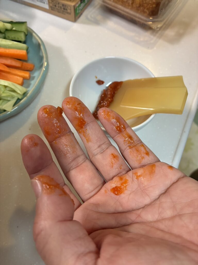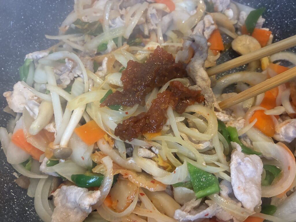 サムジャンは味噌のイメージで使えばOKですが、結構水にも溶けやすいのがGOOD。