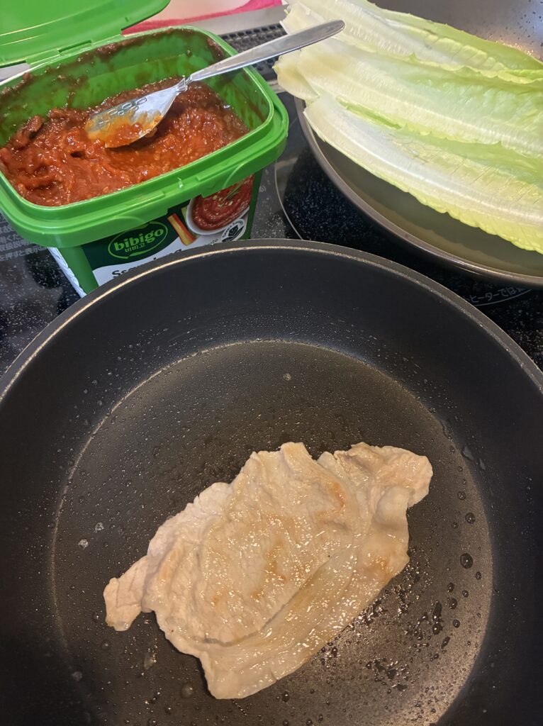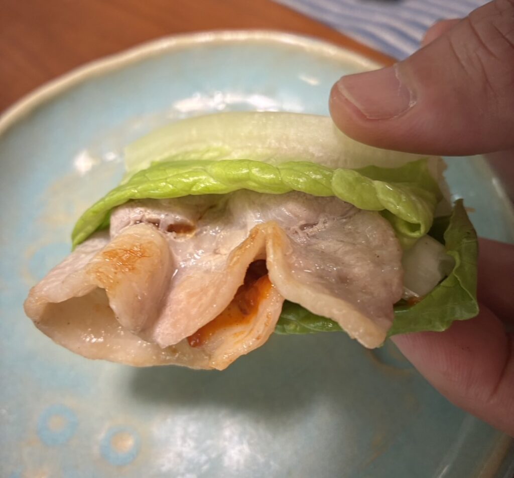 焼いた豚肉×ロメインレタス×サムジャンが家族に好評