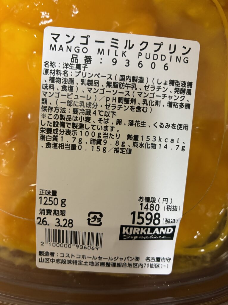 コストコの期間限定スイーツ「マンゴーミルクプリン(1,250g)」を買ってみました。