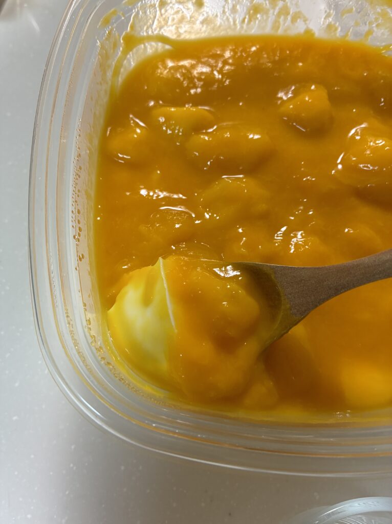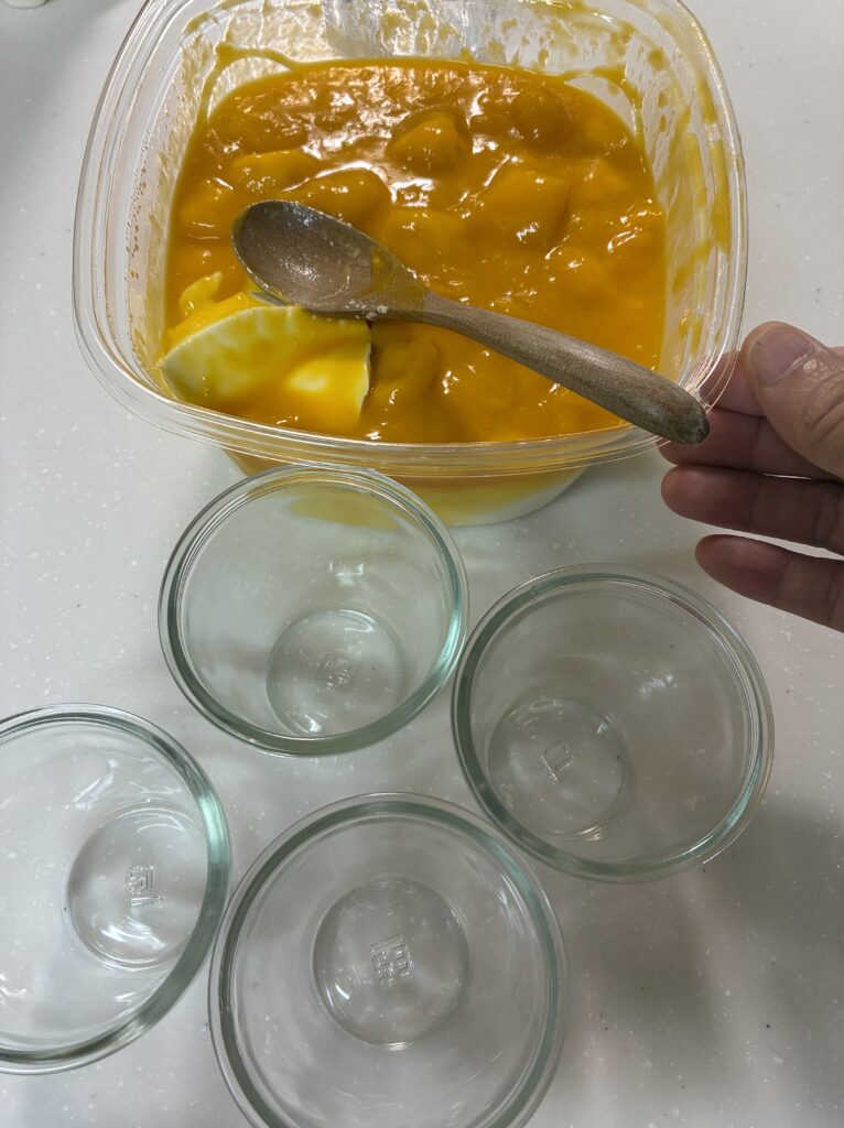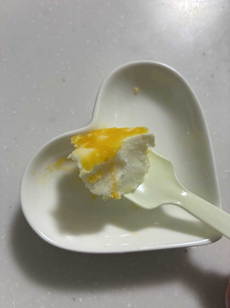 冷凍するとミルクプリンの良さが消えて、マンゴーソースのピューレ感も飛びます。