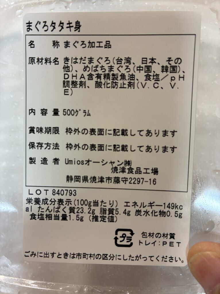 コストコのまぐろたたきの原材料はこれだけ。