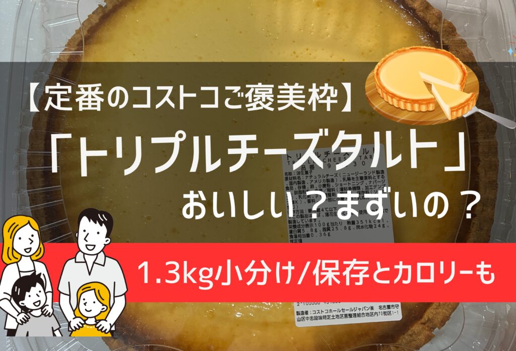コストコの巨大スイーツといえば、定番で人気のロングセラー商品「トリプルチーズタルト」。 直径約30cm、重さ約1.3kg。売り場で見ると「大きすぎない?」と少し身構え...
